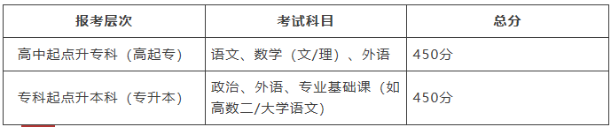 • 文史类、外语类、艺术类、公安类:语文、数学(文)、外语