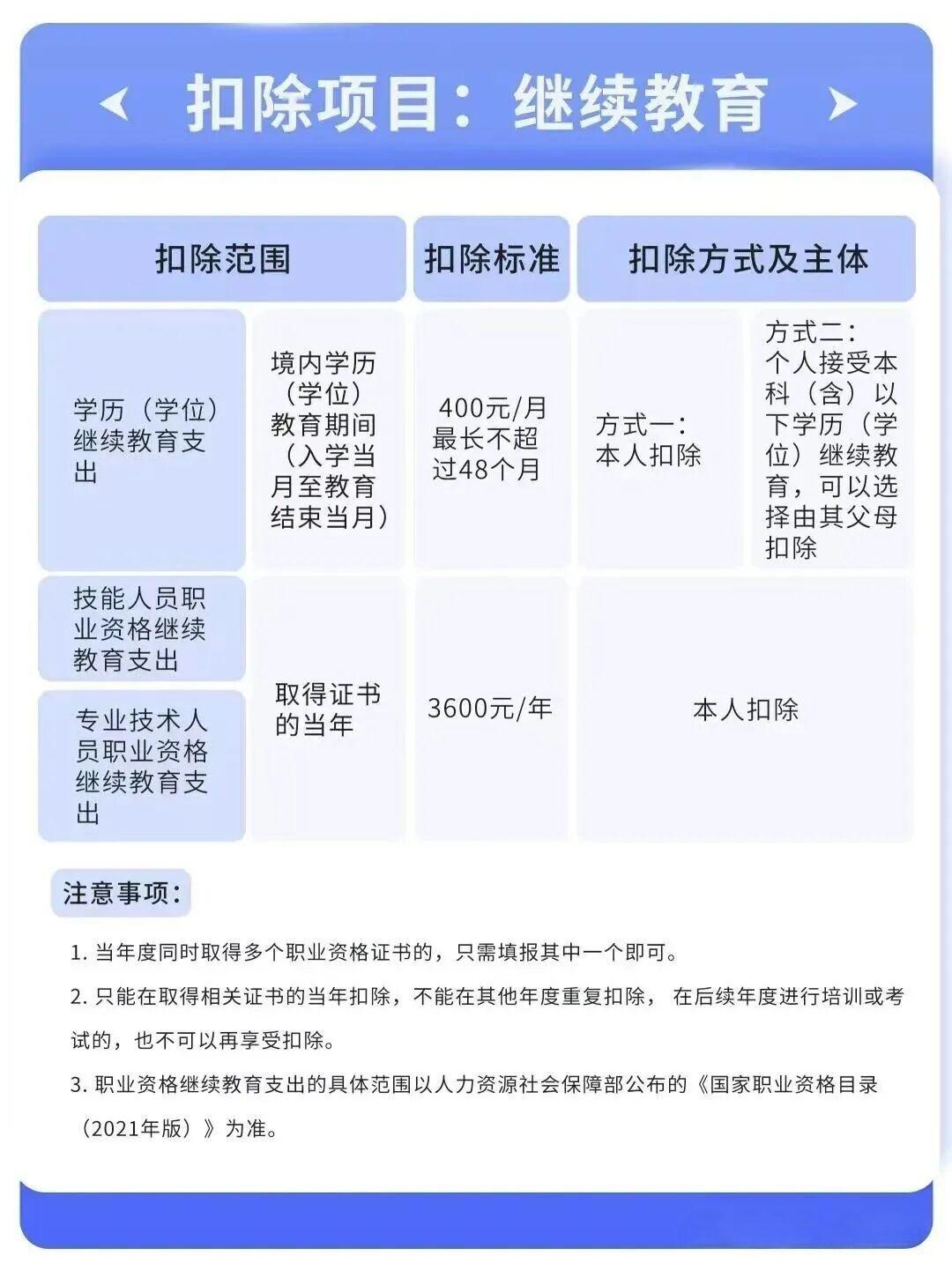 抵扣流程:成考注册入学后,取得大学学籍,通过“个人所得税APP”注册登录,首页“专项附加扣除填报”,再选择“继续教育”,选择扣除年度,按照提示上传资料,证明材料可以学信网下载“学籍在线验证报告”