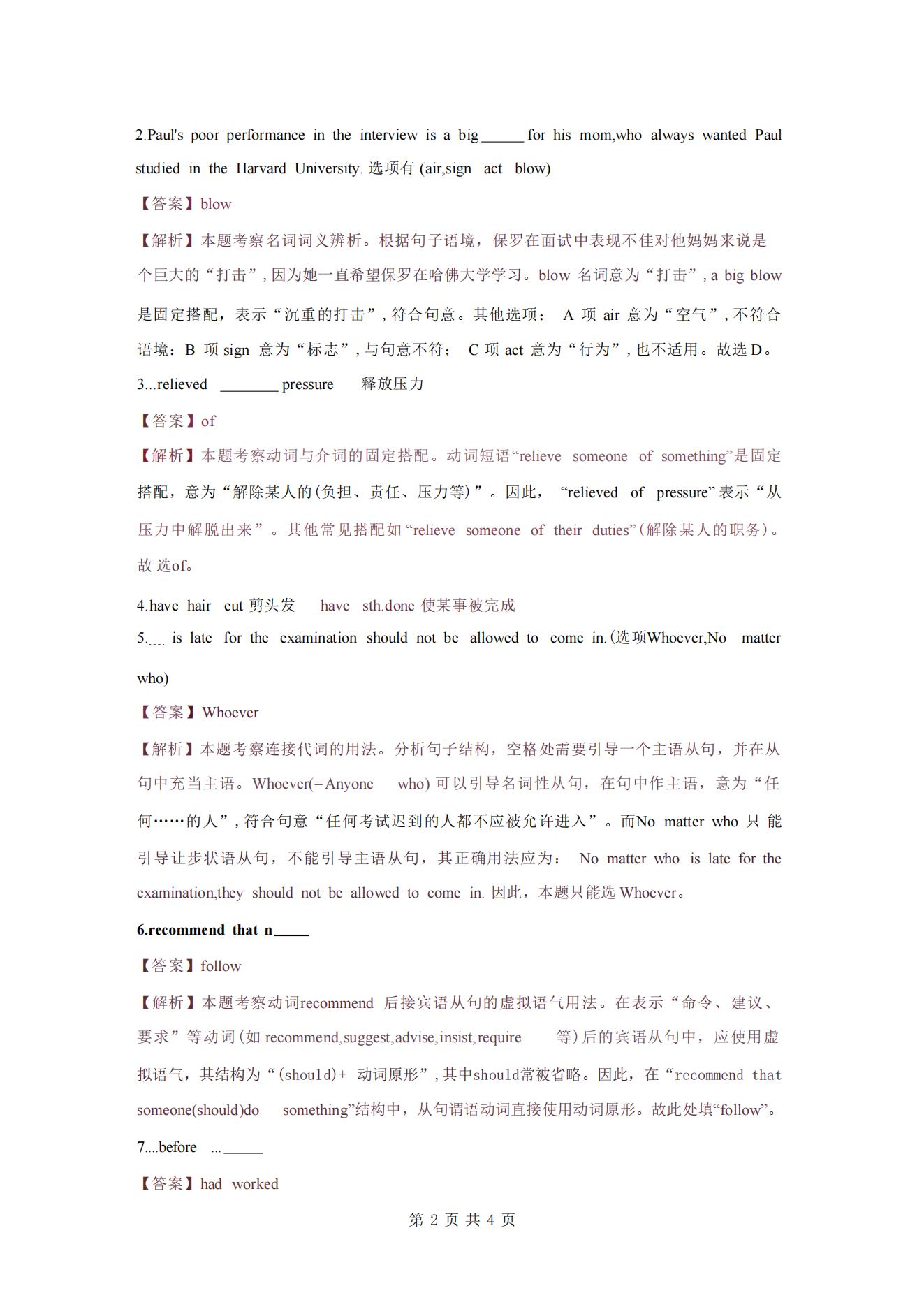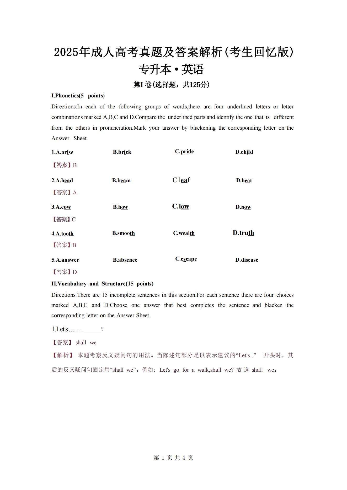 2025年成人高考专升本英语真题及解析(考生回忆版)