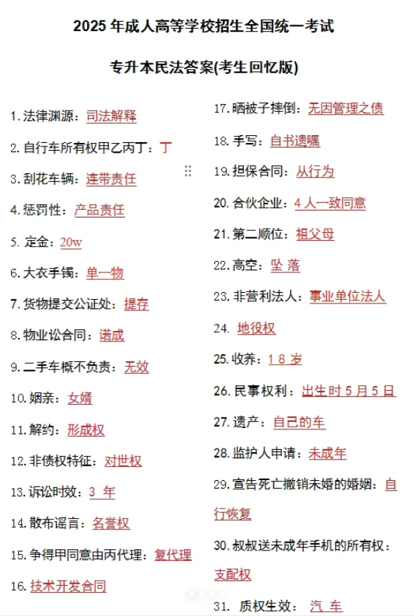 2025年成人高考专升本民法真题及解析(考生回忆版)